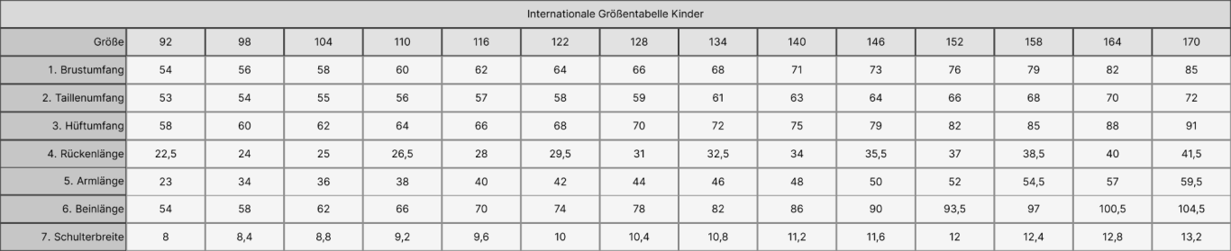 Größentabellen